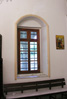 أروقة حديثة بنيت بالباطون الخام متباينة مع الحجر الرملي الذي يكسو الكنيسة ذات اللون البيج